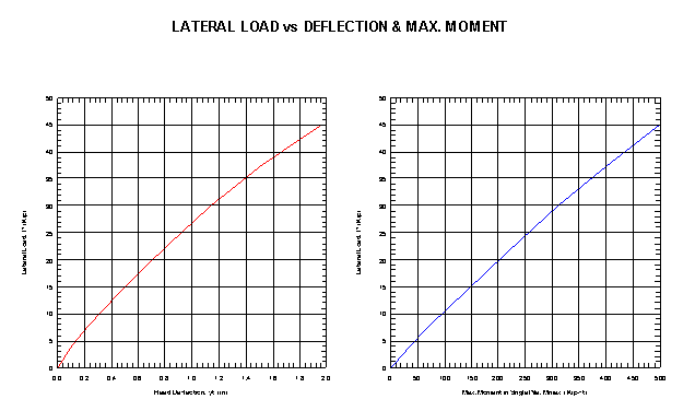 Results Output: Lateral load, and maximum moment vs. pile top deflection.