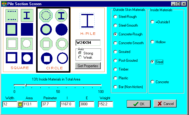 Allpile calculates the section properties for users. It has a built-in database for all available steel piles.