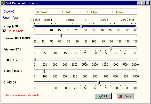 For users with limited field data, they can just select any one of the soil parameters in sliding bars and let the program to find other parameters for them.